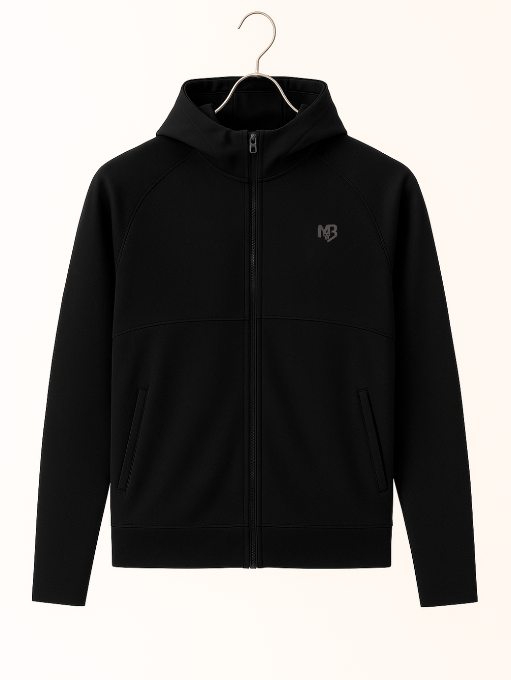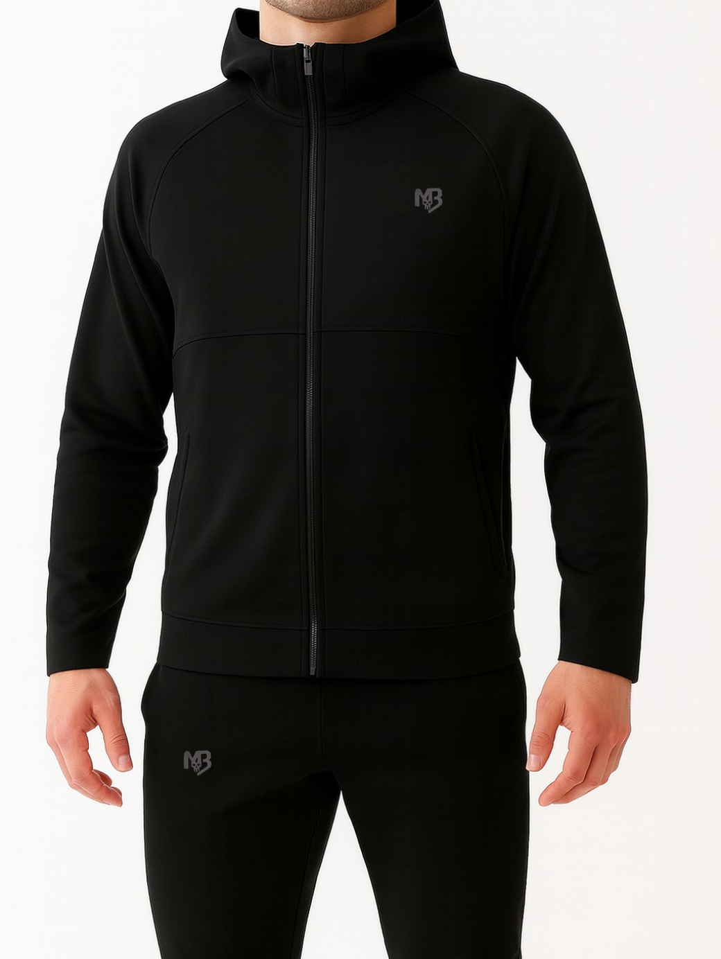 Crna trenerka koja nosi čist, snažan MB identitet. Minimalistički, ali moćan logo na prednjoj strani daje joj onaj sportski moderan vibe koji se vidi i oseća.